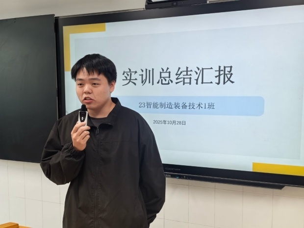 为帮助同学们回顾实训中的收获与不足,为未来专业课的学习奠定坚实基础,23智能制造装备技术1班于10月28日—11月4日期间,举行了实训总结大会,同学们依次上台进行了成果展示与汇报。
