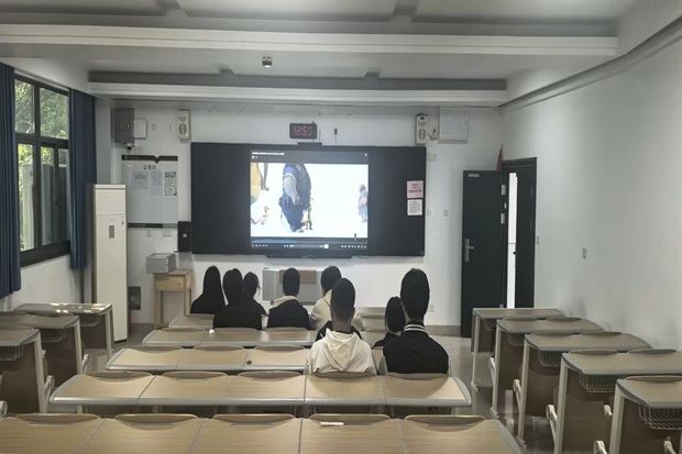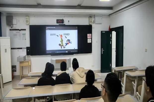 活动当日,社员们早早来到教室,有序就座。随着大屏幕亮起,本次观影的第一部作品——迪士尼经典动画《疯狂动物城》开始播放。影片中,兔子朱迪与狐狸尼克的精彩对话和充满创意的动物都市设定,瞬间吸引了大家的目光。社员们时而因幽默的情节开怀大笑,时而为角色的成长暗自鼓劲。当看到朱迪用流利的英语在警局据理力争,为实现警察梦不懈奋斗时,不少社员都露出了钦佩的神情。